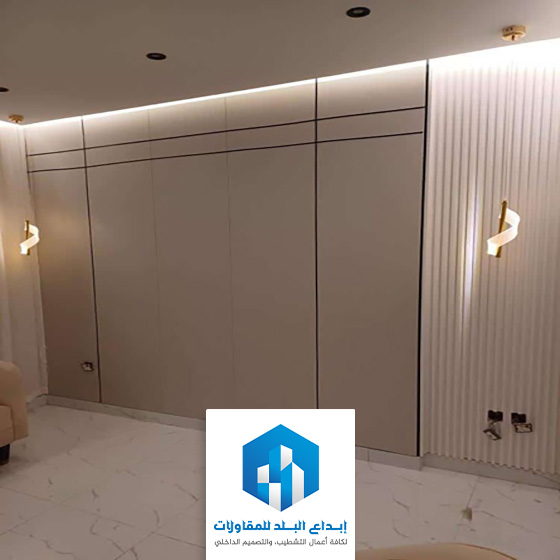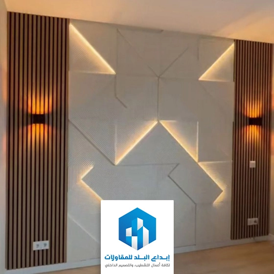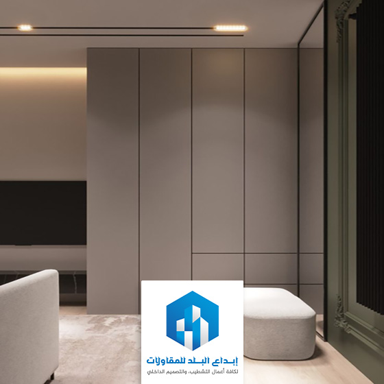 | 4- | وحدات الإضاءة المخفية | دمج شرائط إضاءة ليد ناعمة بين فواصل الواح الشيبورد |