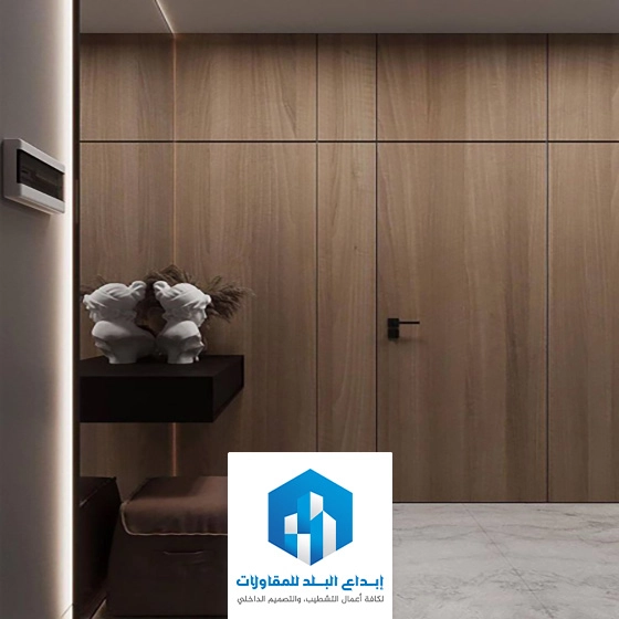 استخدام ألواح الشيبورد الطولية التي تحاكي بديل الخشب وتركيبها بشكل عمودي متجاور فهذا الأسلوب يُستخدم بكثرة في المداخل والممرات ويعطي احساس بالارتفاع.